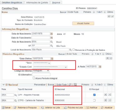 Páginas com os dados mascarados de acordo com a permissão do usuário.